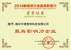 2014年に最も影響力のある栄譽の証明書